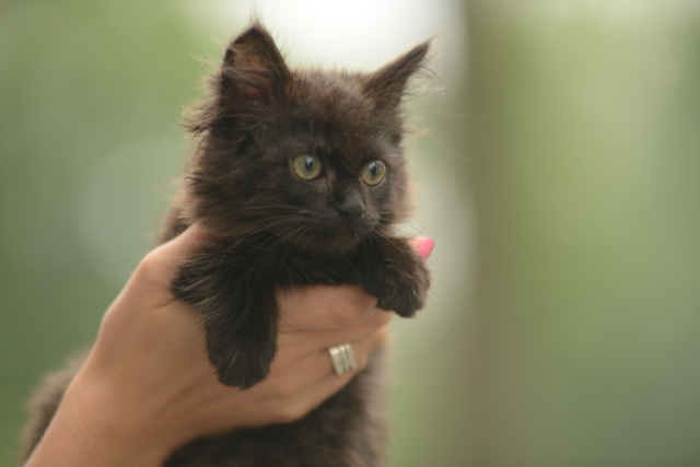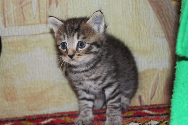 Тарахтун самый крупный котенок из помёта, иногда даже кажется, что он просто попал за компанию с ними, так как он реально значительно крупнее остальных котят.