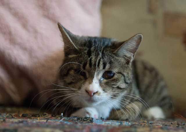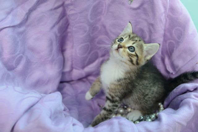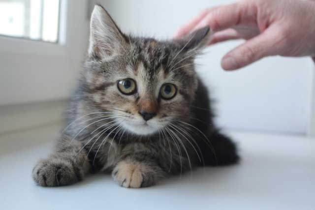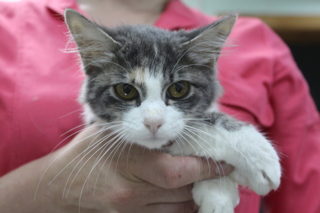 Лолочку в клинику привезла Ирина, она регулярно помогает животным и мимо этой малышки проехать не смогла. Лолочка в прямом смысле кинулась ей под колеса, хорошо Ирина заметила маленький пуховой комочек и затормозила. У Лолы, как у многих сейчас котят был ринотрахеит, глазки очень слезились, на одном глазике третье веко так и осталось неровным.
