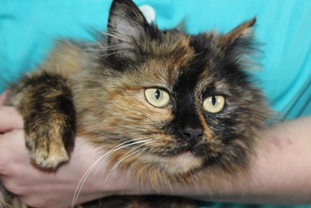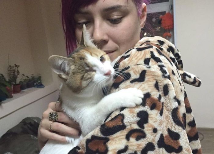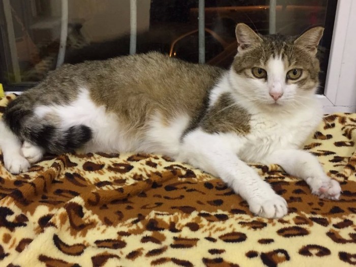 Эту кошку нашли ещё осенью, обратились к нам за помощью в лечении. У котейки было выпадении кишки. Мы договаривались с клиникой, опекуны сами всё оплачивали и сами нашли передержку на тот момент.