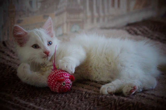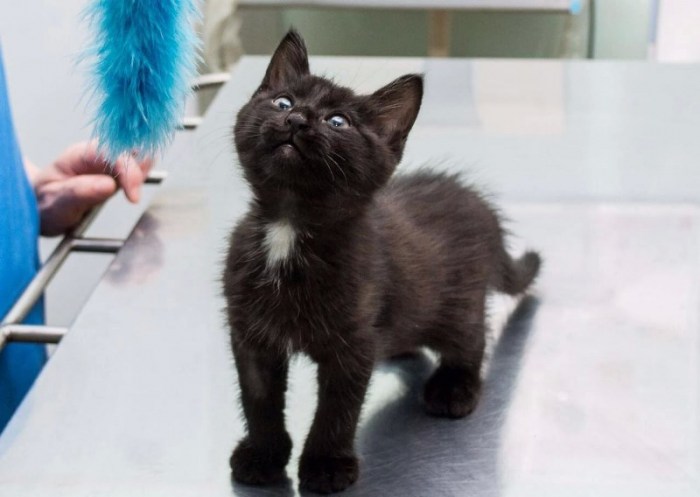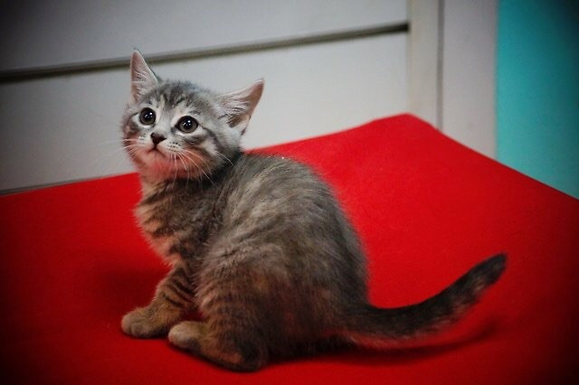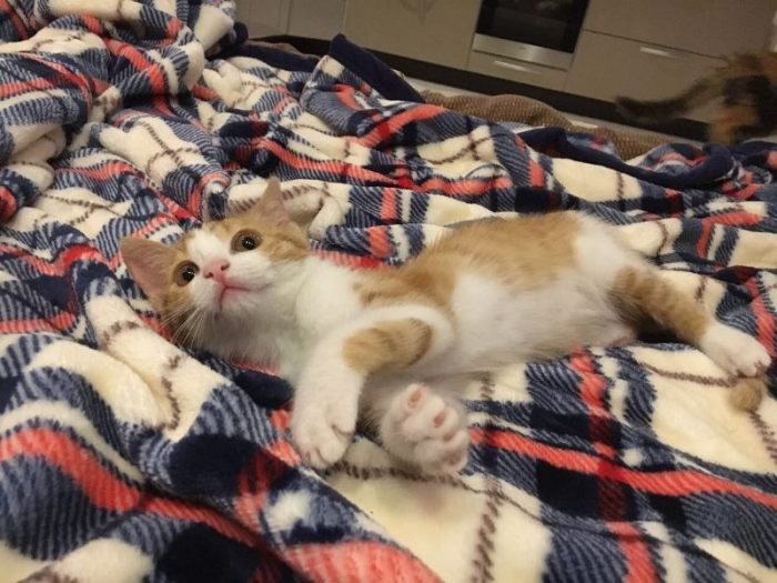 Этот килограмм кота взбудоражил всех старших на передержке. Он заводной, юркий и крайне позитивный ребёнок. Он решил, что с ним должны непременно общаться все, хотят они того или нет. Он же просто комок позитивной энергии, его не возможно не любить и не целовать.