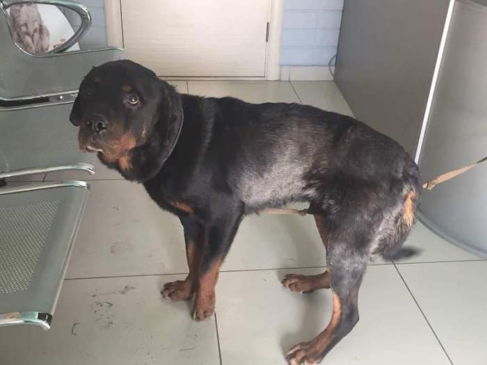 Пес валялся в ливневке, кто то сбил и уехал. У него явный недостаток веса, он обезвожен. Ещё будем тесты на инфекции сдавать. Пес в общем очень слабый. К сожалению все оказалось печально. Мальчик скорее всего стайный дичек.