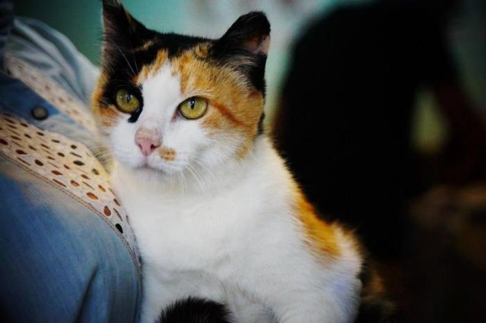 Эта красивая малышка живёт у Нины Ильиничны. Бабушке сложно уже ухаживать за животными, да и со слепу она их толком и не различает.. А кошечке нужна ласка и внимание, она очень общительная и ищет в человеке заботу. Викки уже стерилизована.