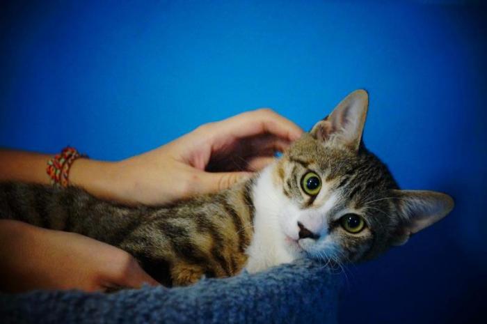Нира жила на рынке. Кошечка совсем молоденькая, но успела загулять. Нашлась "спасительница", которая не нашла денег на стерилизацию, зато забрала кошку домой и позволила ей родить. Вот только кормить молоденькую мамочку денег она тоже не нашла. В итоге кошка практически голодала.