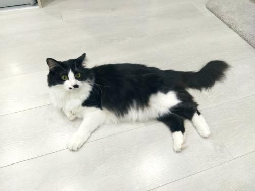 Парня нашли в подъезде. Чистого, ласкового и напуганного. Конечно же его не выкинули, просто потеряли и забыли, где искать. Клаус молодой, приученный к лотку, здоровый и ласковый кис.