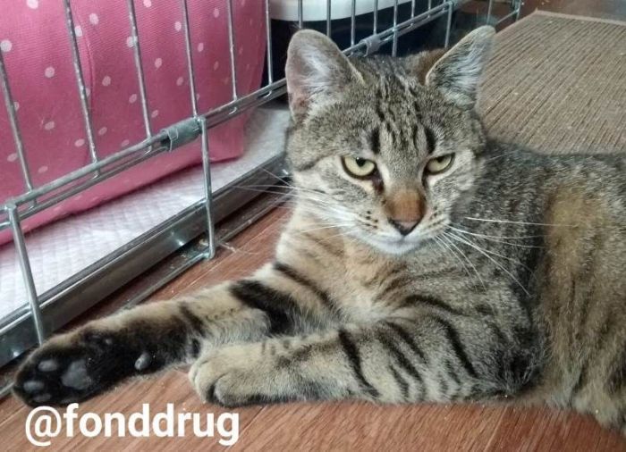 Марракеш ещё один новенький. Его нашли за городом и не смогли там бросить. Худой, облезший, местами битый, но при этом очень ласковый кот.