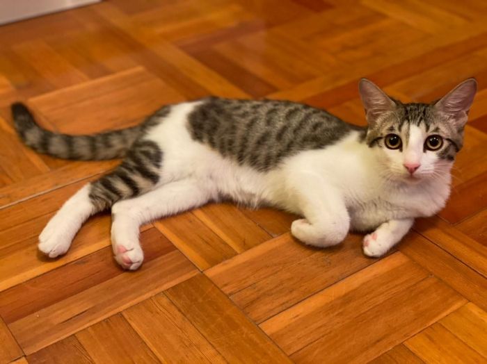 Пеле нашёлся на улице. Ласкового, молодого кота кто то выкинул. Но котей, не испугавшись превратностей судьбы, просил помощи от тех, кто собственного его и предал. От людей.
