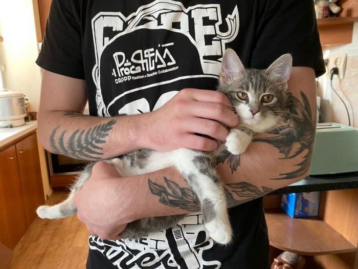 Лирой был найден в том же подъезде и теми же ребятами, которые нашли Лету и Ньюта, видимо у ребят в подъезде мёдом намазано для красивых котеев.