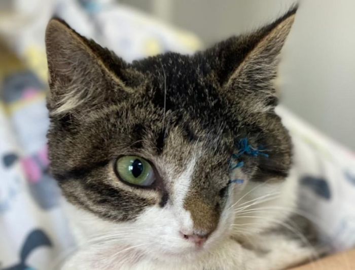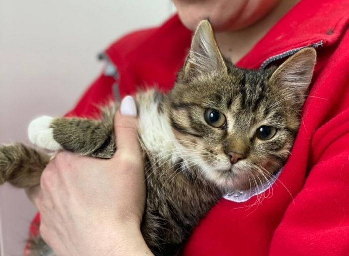 Нам позвонили и рассказали про кису в частном секторе с явными ранами на голове. Что с ней случилось — не известно, но выглядела она больной, нахохленной и грустной.