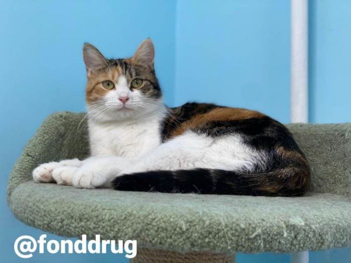 Камея после закрытия котокафе живёт на домашней передержке у Татьяны. Мы безумно благодарны Татьяне и её молодому человеку за терпение, доброту и заботу о Камее. Надеемся, ситуацию со здоровьем можно будет выправить. А в остальном, она жизнерадостная плюшка, упитанная и очень милая.