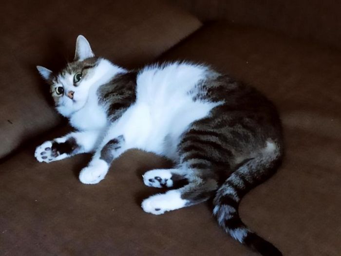 Что с ней случилось, мы не знаем, тот, кто её подкармливал, нашёл на улице с поломанной лапой. Причина травмы нам неизвестна. Кэнди — не самая ручная киса, к сожалению. Она очень боязливая. Собственно это вполне ожидаемо, вряд ли лапу она сама себе сломала.