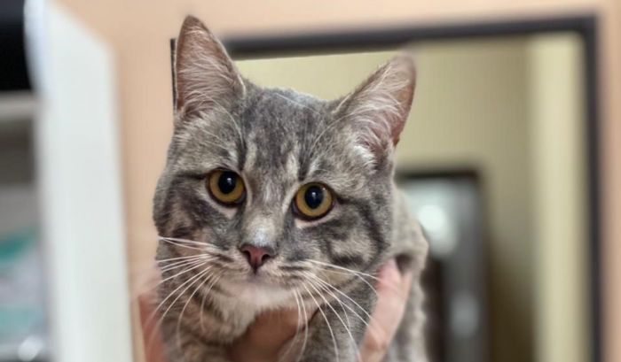 Церебра появилась у нас два дня назад. Истощенную, ослабленную кошку нашли на улице. Оказать помощь ей не могли, поэтому искали ей опекуна.
