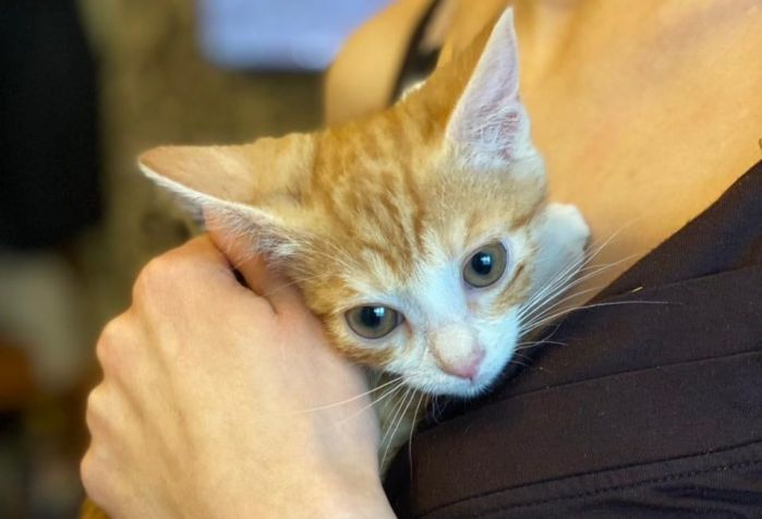 К нам обратилась наша подписчица Елена, к её машине подошёл мужчина и попросил забрать котёнка, мол малыш с парохода, всех котят бросили за борт и судьба этого малыша чуть ли ни в руках Елены.