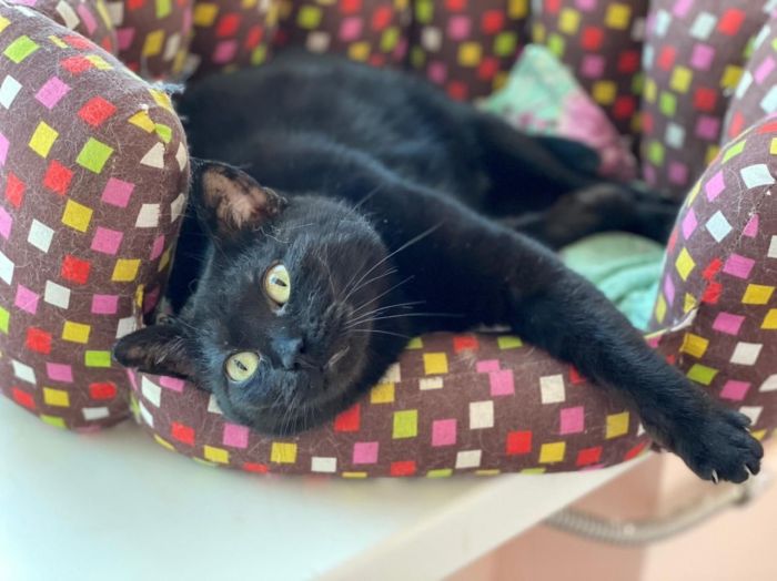 Аида — чёрная пантера. Такая яркая и красивая кошка. Уверены, она опушится, придёт в себя, отъестся полезным кормом и станет ещё прекраснее. Аида всех обязательно удивит.