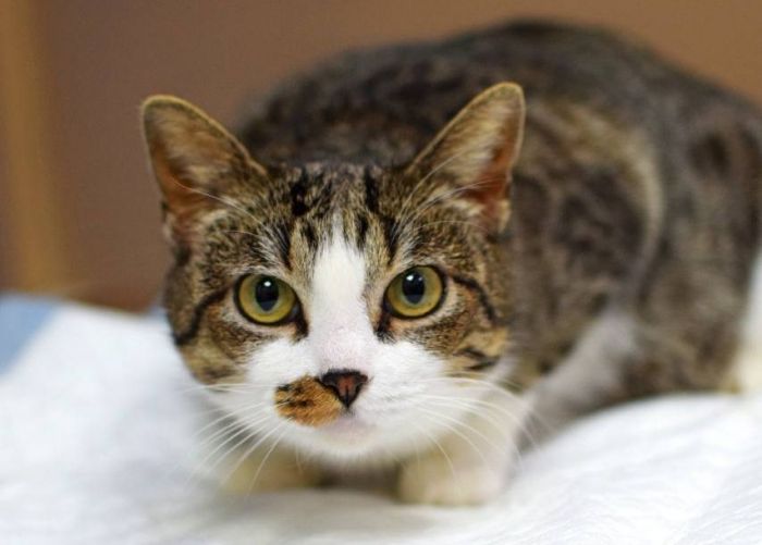 Мелани приехала к нам на прошлой неделе. Она жила рядом с одной из больниц, питалась чем попало. Сотрудники за ней ухаживали в меру возможностей, даже стерилизовали сами. Хвостик у Мелани короткий, потому что ,когда она была малышкой, часть хвоста откусила крыса.