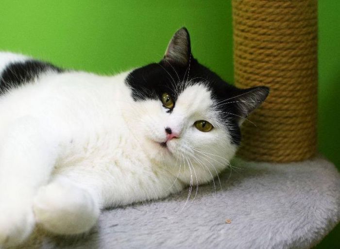 Но вот, что пока не удаётся, так это найти парню достойную семью. В клинике он пробыл давольно долго, привык получать корм из мисочки и жить в тепле. Да и не был он уличным котом, вполне себе ручной домашний пирожочек.