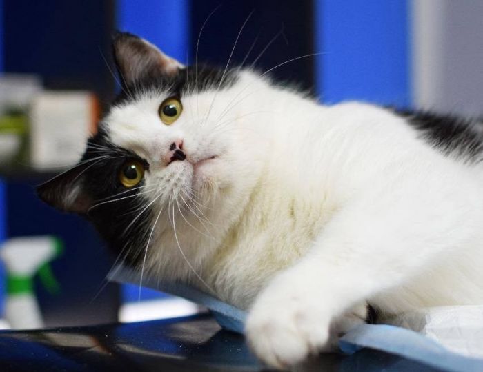 Леон появился у нас случайно. Его принесли в клинику сердобольные бабульки. Они курировали его на улице с котёныша. Лечили, когда у него была травма таза, справлялись, как могли. И вот новая беда. Каловый завал. Как бы еда в кота попадает, но не выходит.