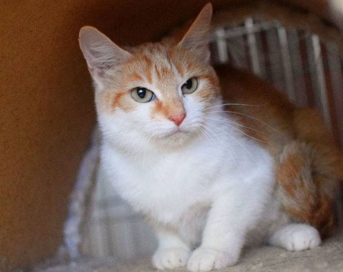 Руссан собственно тоже очень похож на Лёню и остальных бело-рыжих котов из этой квартиры. Есть подозрение, что они там все друг другу двоюродные. Руссан не очень хотел фотографироваться, хоть мы и говорили ему, что это для того, чтобы его мама и папа скорее нашлись. Давайте не подведём его и поможем ему стать домашним быстрее!