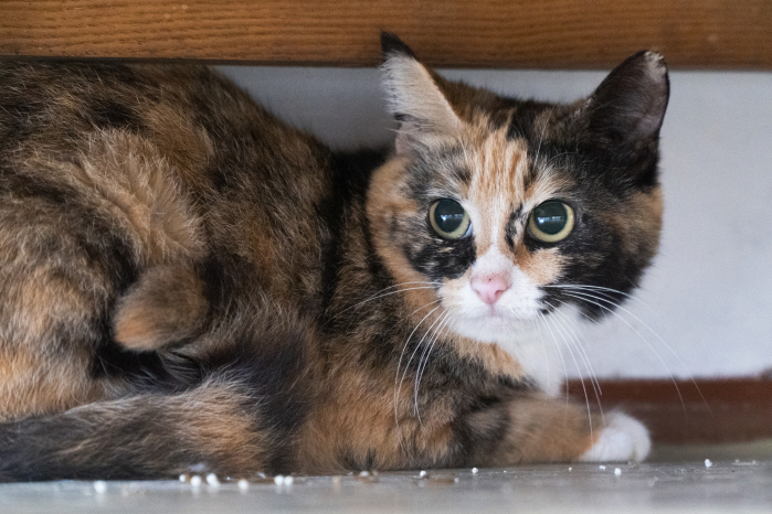 Давно вам не показывали нашу робкую красавицу. Ромашка наела очаровательные щечки.⠀Она с нами с 2018 года. На незнакомых людей все такая же реакция - нырк под ванну и все. А со своей передержкой отношения давно наладились. Она, конечно, не ручная кошка, но очень игривая и любит быть в поле зрения. Просто ей очень нужна своя семья, где она сможет раскрыться и стать ласковой и контактной кошкой!