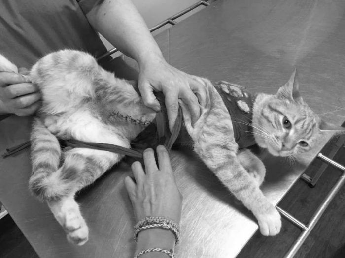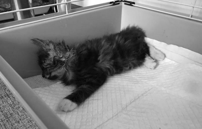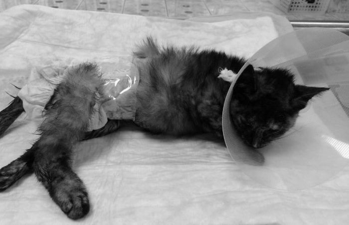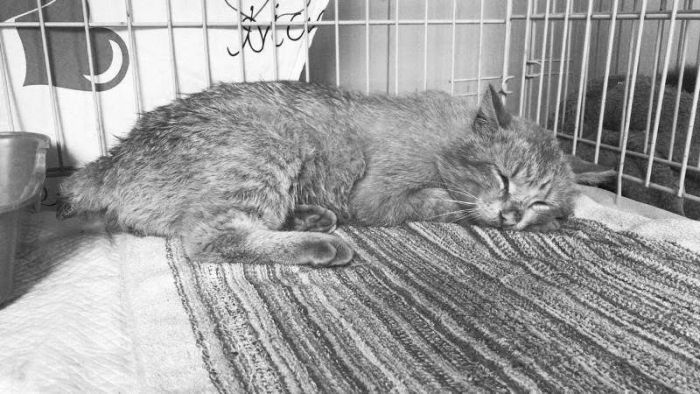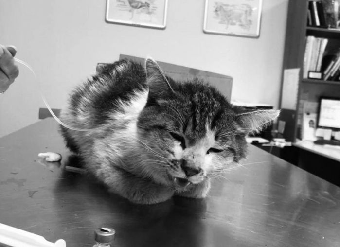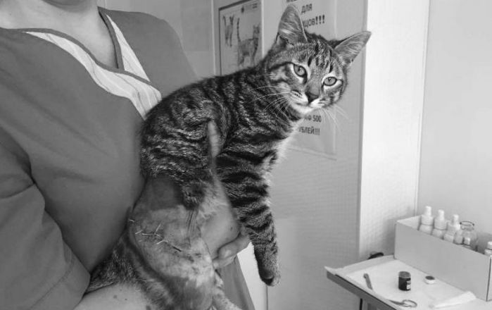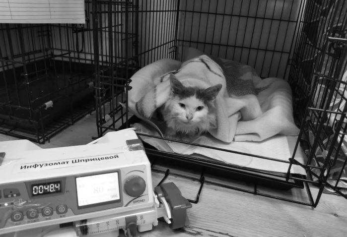 Он был истощён, температура была критично низкая, и он уже не ел. К сожалению, мы пошли по ложному пути, так как он заинтересовался сосиской. Мы начали скупать фарш/мясо и разные корма. Просто думали, что он, как и Стетхем, не умеет есть корм. Параллельно, само собой, его обследовали и давали поддерживающую терапию, исходя из видимых симптомов, но это частично смазало симптомы. Только через двое суток был поставлен диагноз – «непроходимость кишечника». Рискнули оперировать, достали еbanый кусочек резинового коврика… но операцию он не перенёс. После неё он не смог проснуться. К моменту операции он был уже слишком слаб, истощён, и сил не хватило. Это был банальный непроход. Просто кто-то выкинул его из дома вместо того, чтобы лечить. А мы, не зная анамнеза, тыкались, как слепые котята в разные диагнозы, пока не нашли нужный.
