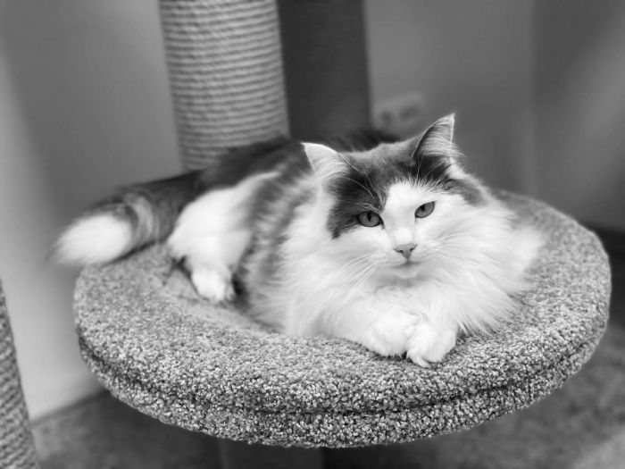 Она прожила в фонде всю свою жизнь. И, к счастью, большую часть этой жизни рядом с ней была наша котоняня Вика. Гермиона жила, как домашняя кошка, спала в кровати, рядом был человек, которого она считала своим.